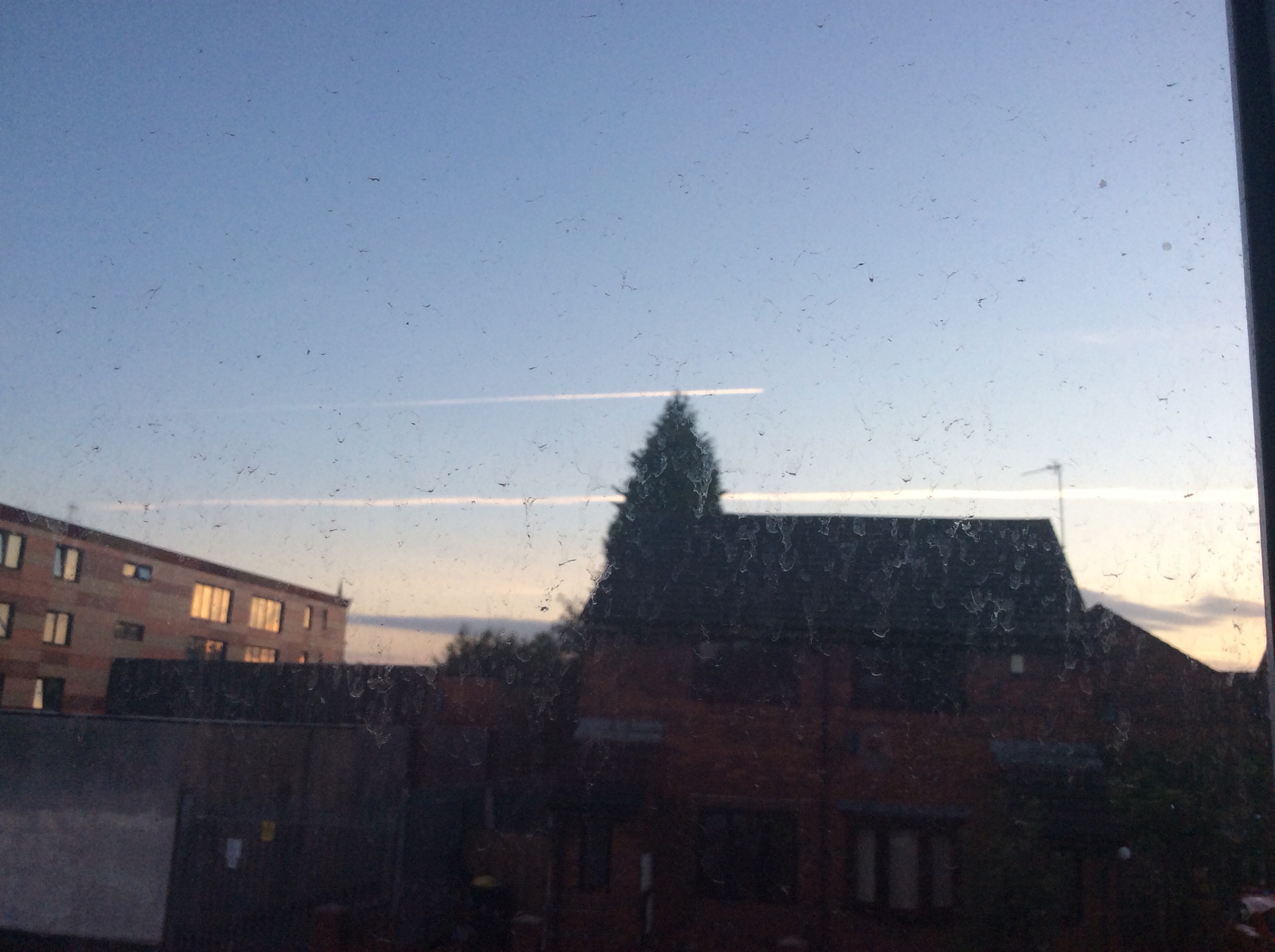 I spotted two aircraft travelling over the skies of Salford this morning. Don’t know where they were going, but I’m sure it was some place nice and hot. Sun is slowly making its way above the horizon in the east, soon it will be bright and sunny