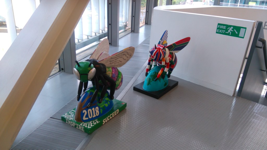 As well as the Large bees around manchester, as part of the Bee in the city art festival there have been some little bees, created by community and school groups. Here’s a couple i’ve spotted.