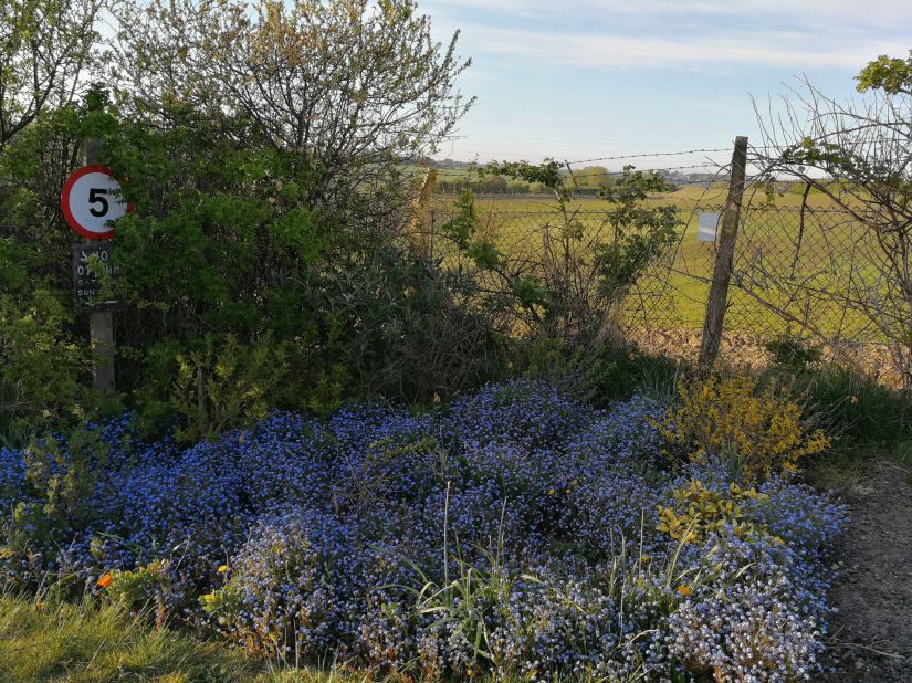 in the grass by the tarmac