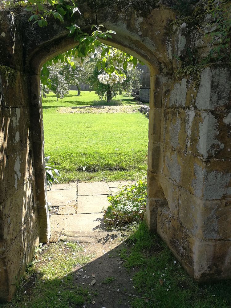 Outwards, the garden gate swings
