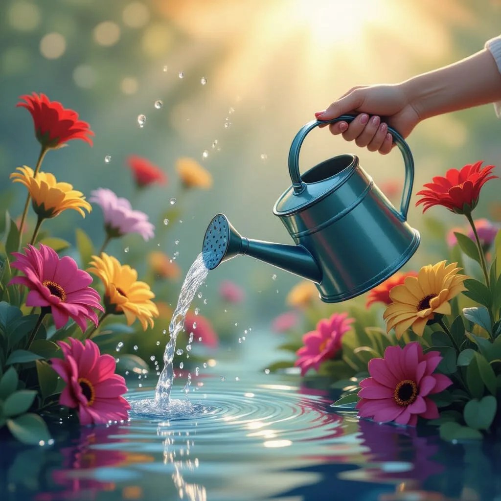 water can on plants